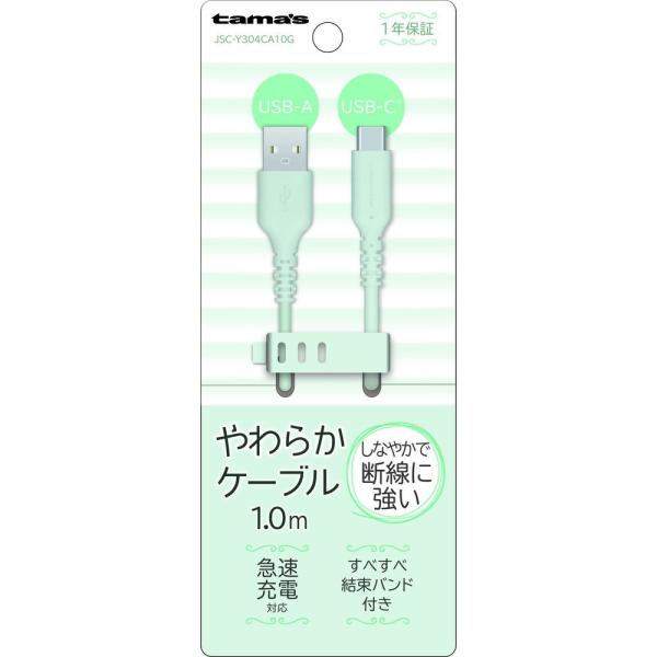 多摩電子 シリコンケーブル USB-A to USB-C 1.0m(グリーン) tama's[Joshinオリジナル] JSC-Y304CA10G 返品種別A