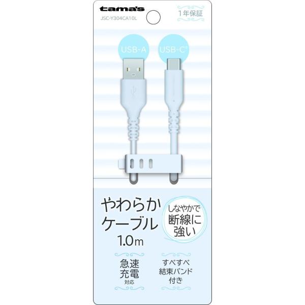 多摩電子 シリコンケーブル USB-A to USB-C 1.0m(ブルー) tama's[Joshinオリジナル] JSC-Y304CA10L 返品種別A