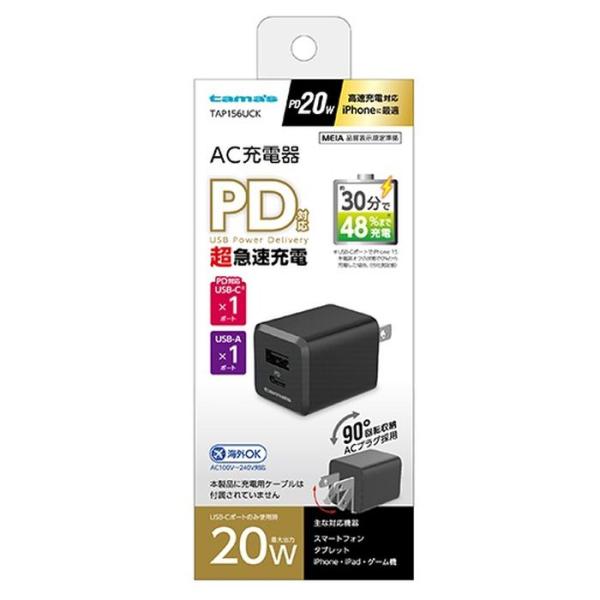 多摩電子 PD20W コンセントチャージャー C+A ブラック TAP156UCK AC充電器 (コンパクト便可)