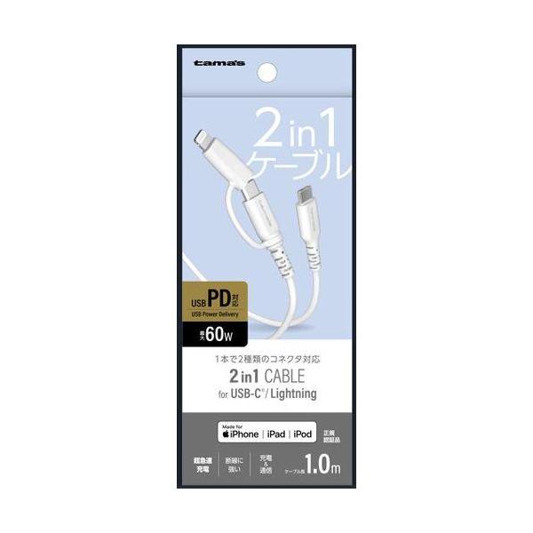 多摩電子工業 TH336LCC10W ホワイト 2in1 USB-C to C&Lケーブル 1m