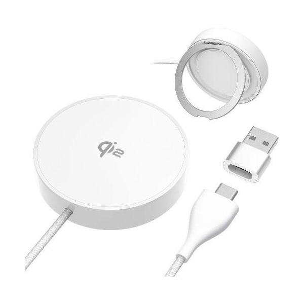多摩電子工業 TWC64W ホワイト Qi2対応 マグネット式ワイヤレス充電器 2in1