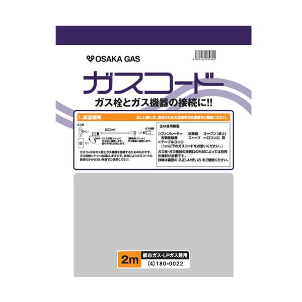 180-0022 大阪ガス ガスコード 長さ2.0m 都市ガス(13A)・プロパンガス(LP)兼用