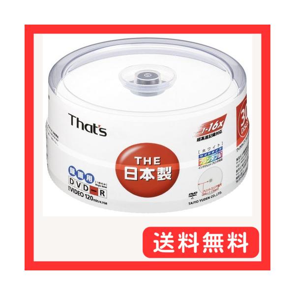 太陽誘電製 That's DVD-Rビデオ用 16倍速120分4.7GB ワイドプリンタブル スピンドルケース30枚入 DR-120WWY30B
