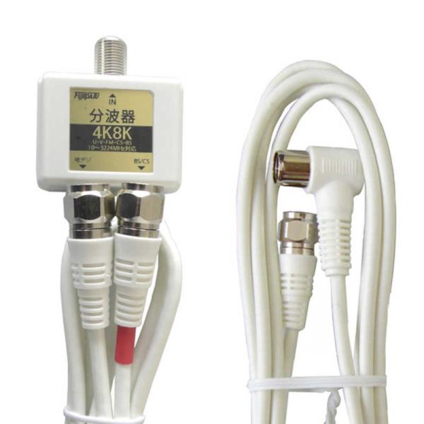 フジパーツ 4K8K放送対応分波器 2.5CFBケーブル出力側0.5m 入力ケーブル1.5m付属 白 FZ-W2C79