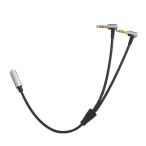 マイク付きイヤホンをPCで使用するための変換ケーブルです。ヘッドセット用変換アダプタケーブル(4極メス->3極オスx2)。片側L型プラグのため邪魔になりにくいケーブルです。