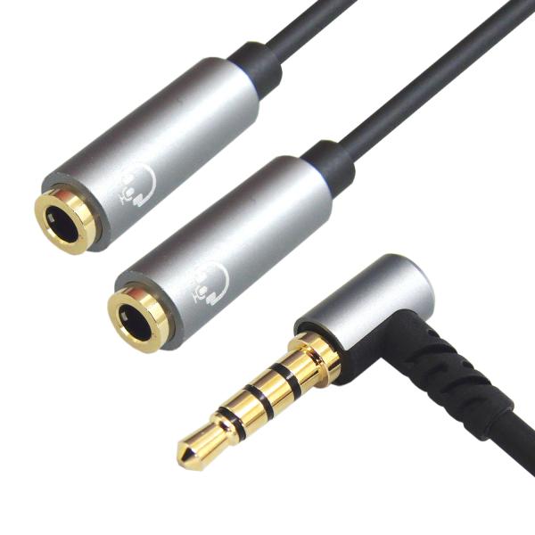 3.5mm4極ステレオミニプラグを分配するケーブルです。1台のデバイスのステレオ音楽が2人同時に楽しめます。片側L型プラグのため邪魔になりにくいケーブルです。