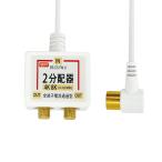 アンテナ分配器 2K4K8K/BS/CS/地デジ/CATV対応 全端子電流通過型 テレビコンセント 2分配器 入力側ケーブル付 15cm