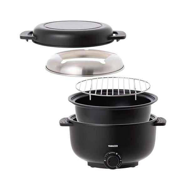 山善 電気鍋 グリル鍋 小型 卓上 一人用 5WAY (焼く/蒸す/揚げる/煮る/フォンデュ) デキタテポット 温度調整機能 着脱式 丸洗い可能
