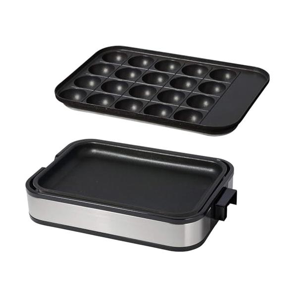 山善 ホットプレート 一人暮らし 二人暮らし 2WAY (たこ焼きプレート 20穴 / 平面プレート) 小型 着脱式 フッ素コーティング 温度調