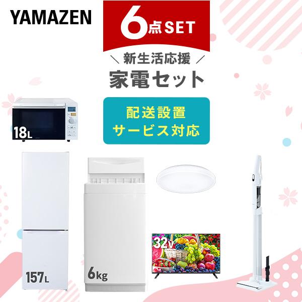 【新生活応援セット】 家電セット 一人暮らし 新生活家電 6点セット 新品 ( 6kg洗濯機 157L冷蔵庫 オーブンレンジ シーリングライト 32型液晶テレビ 軽量クリーナー )