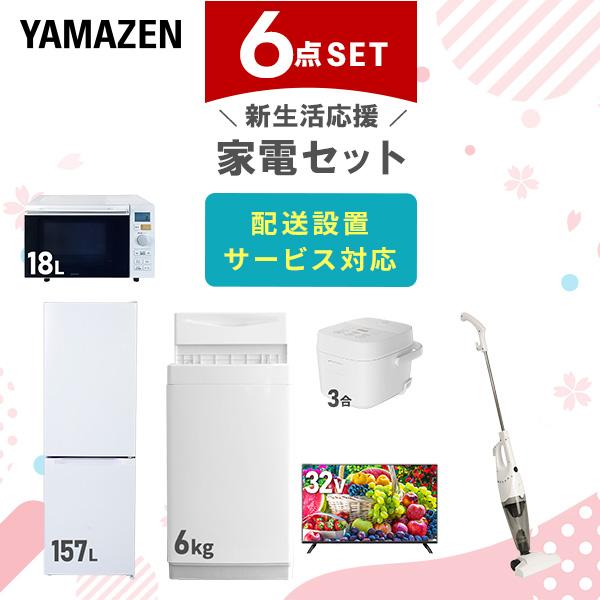 【新生活応援セット】 家電セット 一人暮らし 新生活家電 6点セット 新品 ( 6kg洗濯機 157L冷蔵庫 オーブンレンジ 炊飯器 32型液晶テレビ スティッククリーナー )