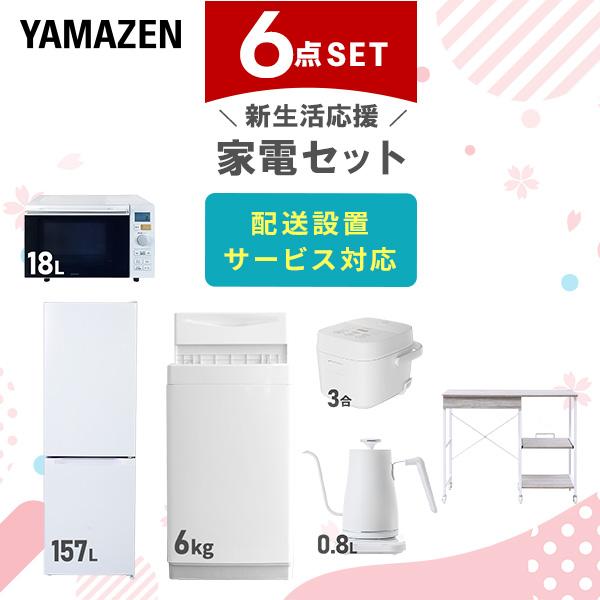 【新生活応援セット】 家電セット 一人暮らし 新生活家電 6点セット 新品 ( 6kg洗濯機 157L冷蔵庫 オーブンレンジ 炊飯器 温調ケトル レンジラック )