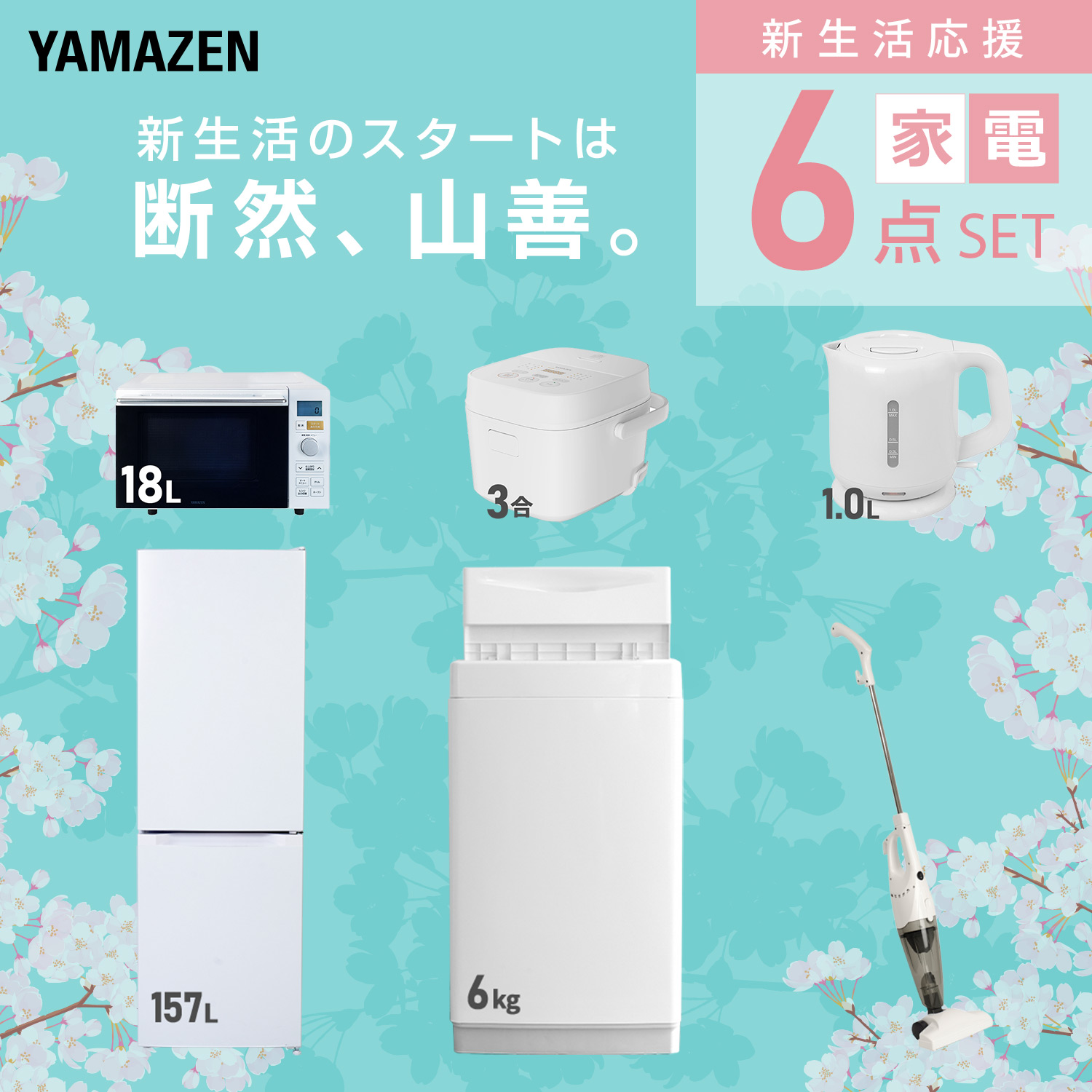 【新生活応援セット】 家電セット 一人暮らし 新生活家電 6点セット 新品 ( 6kg洗濯機 157L冷蔵庫 オーブンレンジ 炊飯器 電気ケトル スティッククリーナー )