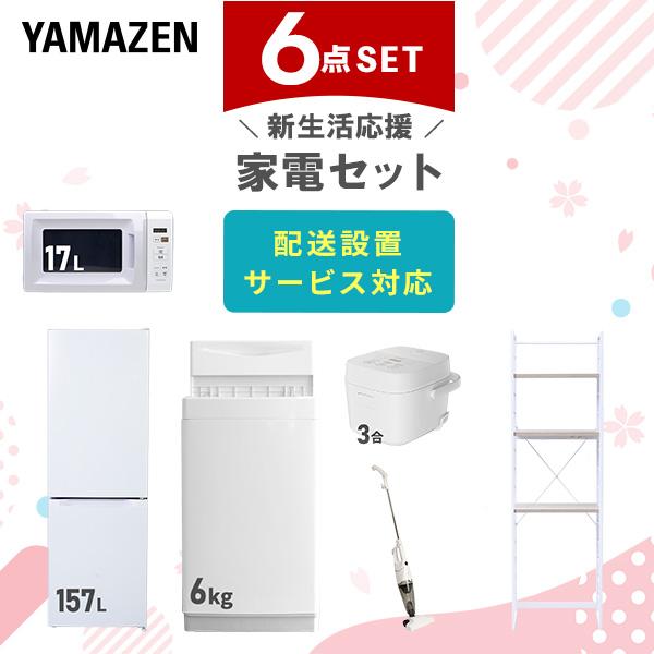 新生活家電セット 6点セット 一人暮らし (6kg洗濯機 157L冷蔵庫 電子レンジ 炊飯器 32型液晶テレビ スティッククリーナー) ひとり暮らし 単身赴任新 学生 山善