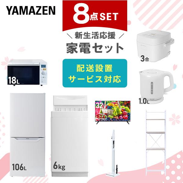 【新生活応援セット】 家電セット 一人暮らし 新生活家電 8点セット 新品 ( 6kg洗濯機 106L冷蔵庫 オーブンレンジ 炊飯器 32型液晶テレビ 電気ケトル 軽量クリーナー 家電収納ラック )