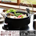 山善 電気鍋 グリル鍋 深鍋プレート 一人鍋 鍋直径21.9cm 深さ6cm 着脱式プレート 温度調節機能 保温機能 自立蓋 ガラス蓋 ブラック YGE-S100B