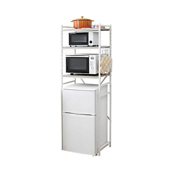 山善(YAMAZEN) レンジラック 冷蔵庫上 ラック 小型冷蔵庫対応(幅59.5×奥行41.5×高さ180cm) 棚板高さ調節可 フック4コ付