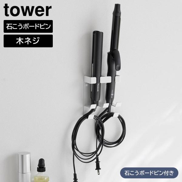 ウォールヘアーアイロンホルダー タワー ダブル 石こうボード壁対応 山崎実業 tower ホワイト