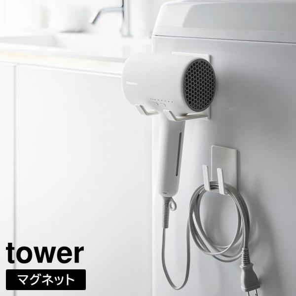 マグネットドライヤー&コードホルダー タワー 山崎実業 tower ホワイト ブラック 1739 1