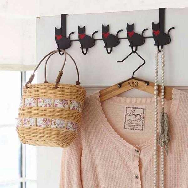 山崎実業 ドアハンガー 猫 5連 横型 ブラック