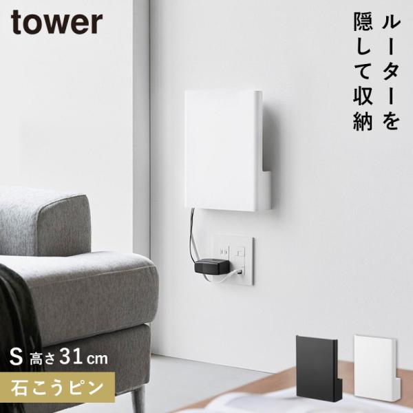 ウォール隠せるルーター収納 タワー Sサイズ 石こうボード壁対応 山崎実業 tower ルーター 収納 ボックス ラック 壁掛け おしゃれ モノトーン ホワイト ブラッ