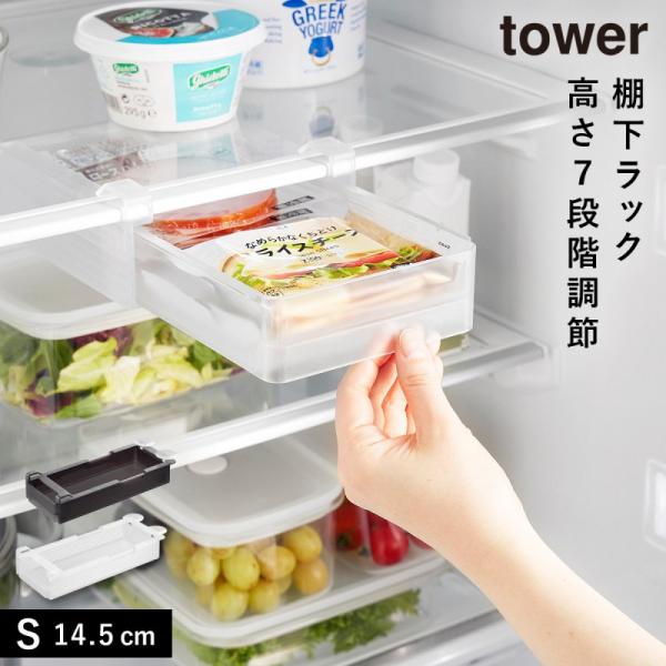 冷蔵庫中棚下高さ調節ラック タワー S 山崎実業 tower おしゃれ 冷蔵庫 収納 グッズ 引き出し モノトーン ホワイト ブラック 10106 10107