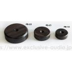 PB-21は凹型をしており、スパイクピンの付いたスピーカーやアンプのピンの下に敷いて受けベースとして使用できます。また、PB-20, PB-21はそれぞれを組み合わせて上下構造としてアンプなどの下に使用しますと上下面共に平らになり安定性良くオーディオ機器を支えて3点または4点支持とすることができます。通常これらのピンポイントベースには金属が使用されることが多いですが金属製のスパイクには金属特有の共振音が出る場合が多く、PB-20, PB-21等の堅い木材を組み合わせることによってそれらの共振音を防ぎ、耳に心地よく澄み切った再生音を得ることができます。特に金属製のスパイクピンを金属のプレートで受けますと共振音が乗りやすいですが、PB-21を組み合わせることによって金属のスパイクが適度に食い込み、安定させしかも金属的な共振を防ぐことができます。