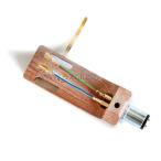 HS-2にはその中でも最も質の良いアサダ桜の心材のみを厳選して使用しています。このアサダ桜材はネジ切れるほど硬くないため、真鍮製の指かけ兼用のネジ止め用のプレートを使用してカートリッジをしっかり止められるようにいたしました。桜材の比重が金属や黒檀に比べて軽いため、この真鍮製のプレートとの組み合わせで重量バランスを取っています。ネジ止め部にも磁性のない金メッキを施しておりますので、磁力の影響が大きいMCカートリッジにも安心してご使用いただけます。木材の風合いやその質感を大切にして、人体にほとんど影響がないエコ塗料系の木材保護塗料を塗り、バフ仕上げで仕上げています。木材の持つ独自の外観・柔らかさを実感してください。