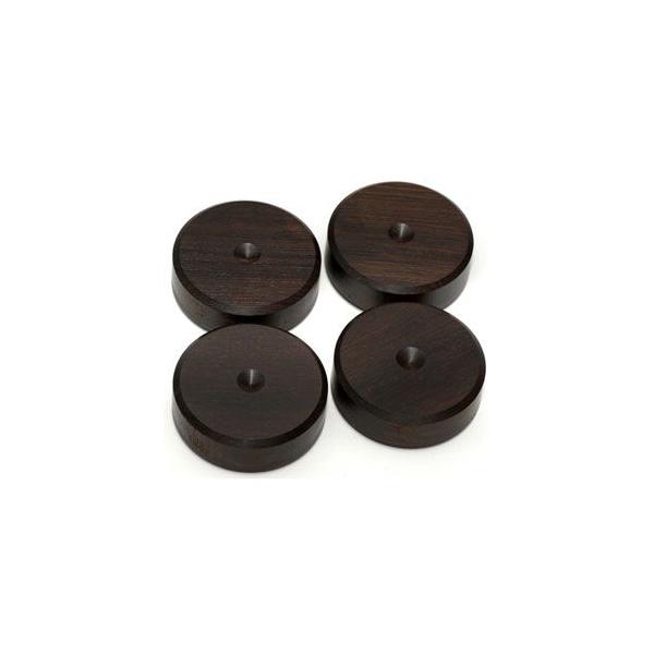 - 山本音響工芸 PB-23 アフリカ黒檀製スパイク受けベース 大型木製スパイクベース インシュレーター ビジュアルグランプリ選定品 最高級アフリカ黒檀の59mm径大型スパイク受けベース ★ピン型ベースとしてPB-9とPB-20と組み合わせて使用することも可能です。PB-9、PB-20と組み合わせた場合には上下面が平面で使いやすくなります。最近のオーディオ製品はスパイク付きの製品が多くそのスパイクを受けるためのベースが必要になります。PB-23は直径が59mm, 高さが20mmと大きいため大型重量級のスピーカーやアンプに適合します。★通常これらのピンポイントベースには金属が使用されることが多いですが金属製のスパイクには金属特有の共振音が出る場合が多く、PB-23は木材ですので固有の共振音を防ぎ、耳に心地よく澄み切った再生音を得ることができます。特に金属製のスパイクピンを金属のプレートで受けますと共振音が乗りやすいですが、PB-23を組み合わせることによって金属のスパイクが適度に食い込み、安定させしかも金属的な共振を防ぐことができます。 2