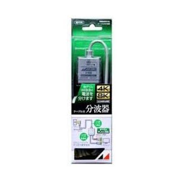 - 日本アンテナ RMSUES15L 4K8K放送対応 ケーブル付分波器 発売日:2016年7月20日●混合器やブースターなどで混合したUHF(地上デジタル)アンテナとBS・CSアンテナの電波を、再び分けてテレビ・レコーダーなどに接続するときに使用します●4K8K放送に最適4K8K放送(3224MHz)の視聴に最適なケーブル付分波器です●内部ケースに亜鉛ダイカストケース使用電波の漏洩・飛込みを防止する高シールド構造です●電通ランプ搭載テレビからBS・CSアンテナまで電流を送りたいときに、ランプの状態で送電ができているかどうか確認ができます●スクリュープラグモデル採用スクリュープラグを採用しているので、しっかり確実に接続できます【仕様】出力ケーブル長さ0.5m出力コネクタ形状スクリュー型入力ケーブル長さ1.5m(コネクタ形状:プッシュプラグ)通過帯域損失HF:1.0dB以下 VHF・FM・UHF:1.5dB以下 BS・CS:1.6dB〜3.3dB以下電通CS・BS出力端子-入力端子間電通(最大DC15V・0.8A)パッケージ寸法(mm)高さ220×幅63×厚み42