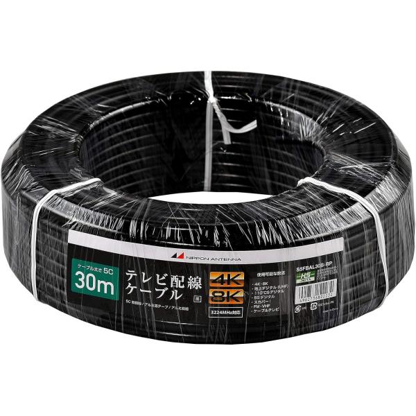 日本アンテナ 同軸ケーブル S5CFB 30m テレビ用(4K8K 地デジ BS CS CATV 対応) 屋外・屋内用 ブラック S5FBAL30B-