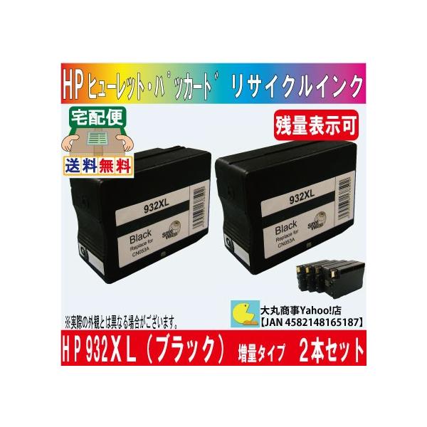 HP(ヒューレット・パッカード ) 932XLブラック 増量タイプ リサイクルインク 2本セット ICチップ付 【残量表示可能】
