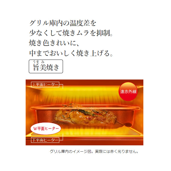 ■ヒーター仕様:左右3.2kw、中央2.0kw、グリル上1.4kw、グリル下1.2kw