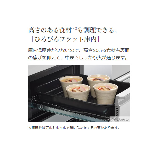 ※ラク旨グリルは食材高さ60mm以内、器高さ70mm以内、ラク旨オーブンは食材高さ70mm以内、器高さ80mm以内でお使いください。