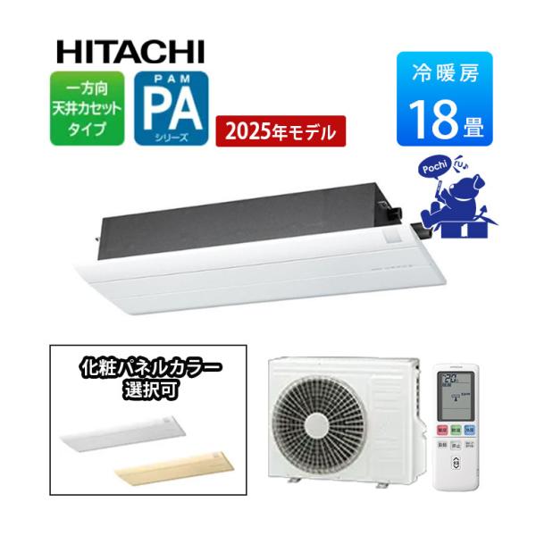 エアコン 冷暖房 日本製 防カビ 単相200V 日立 天井カセット1方向形 18畳 室外電源 ビルトイン PAシリーズ RAP-A56SD 化粧パネル付 RAP-PAKPSW 5.6kw 2025年度