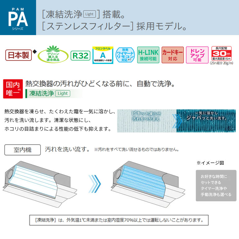 - ※こちらは商品のみの販売です。 設置工事は対応しておりません。ご注意ください。 ★ご注文前に必ずご確認ください★ ●メーカー直送の為、到着時間のご指定はできません。 ●ご注文確定後、2週間程度のお届けとなります。(在庫状況により早まる場合もございます。) ●お届け日について ・カート内でお届け指定日の選択なし ⇒ 最短納期で手配 ※ご登録のメールアドレスにお届け日のご連絡をいたします ・カート内でお届け指定日の選択あり ⇒ 指定日にて手配 ※土・日・祝・年末年始・お盆期間のお届けは出来ません。 システム上、土日祝日の表示が出ますが、平日をご選択ください。 ●配送日にドライバーよりお電話する場合がございます。 ●配送先には、日中ご連絡可能なお電話番号をご登録ください。 ●本商品は重量物の為、車上渡しとなります。 ※上階に移動する場合などは、お客様にて移動をお願い致します。 【商品特徴】 ハウジングエアコン PAシリーズ 2025年モデル ●凍結洗浄Light ●おすすめ設定温度モード ●ソフト除湿 ●H-LINK接続可能 ●カードキー対応 ●メーカー保証:ご購入日より1年間 【セット内容】 ●室外機:RAP-A56SD ×1 ●室内機:RAC-PA56SD ×1 ●リモコン:RAR-AY2 ×1 ●化粧パネル:RAP-PAKPS ×1 【注意事項】 ※化粧パネル(RAP-PAKPS)を含んだ価格になります 単相200V20A 室外の端子台に直結 接続芯数:3芯 ドレンアップ可能 ※リフォームパネル(ピュアホワイト・ライトベージュ)は含まれておりません。 ※別売空気清浄フィルターはSP-VCF11をお求めください。 ※アース棒は別売です。 ◆付属品に海外生産品を使用している場合があります。 ※別売ワイヤードリモコン(SP-WD2)が使えます。 ・お使いのモニターの発色具合によって、実際のものと色が異なる場合がございます。 ・恐れ入りますが、商品仕様・機能につきましてはご購入前に、型番より各メーカーサイトにて必ずご確認下さい。 商品関連キーワード 日立 RAP-A56SD エアコン 18畳くらい 2025年モデル クーラー ハウジングエアコン エアコン人気 おすすめ 即納 在庫あり フィルター 配送 HITACHI しろくまくん 全国配送 類似商品はこちら白くまくん PAシリーズ 2025年モデル R184,959円白くまくん PAシリーズ 2025年モデル R164,863円白くまくん PAシリーズ 2025年モデル 158,563円白くまくん PSシリーズ 2025年モデル R283,962円白くまくん PSシリーズ 2025年モデル R209,340円白くまくん PSシリーズ 2025年モデル R189,113円白くまくん PSシリーズ 2025年モデル R182,803円白くまくん 日立 RAM-PA56S マルチ用110,168円白くまくん 日立 エアコン RAM-PA36S78,370円白くまくん 日立 RAM-PA50S マルチ用95,916円新着商品はこちら2026/3/27三菱電機 霧ヶ峰 エアコン 6畳 JXVシリー158,754円2026/3/26パーパス ガス給湯器 GSシリーズ 標準工事費74,661円2026/3/26パーパス ガス給湯器 GSシリーズ 標準工事費76,120円2026/3/26パーパス ガス給湯器 GXシリーズ 標準工事費155,990円2026/3/26パーパス ガス給湯器 GXシリーズ 標準工事費164,900円再販商品はこちら2026/3/28テクノス 23cm クリップ扇風機 CI-23,980円2026/3/28EV充電器 パナソニック EV・PHEV充電用4,619円2026/3/28LINE友だち追加でクーポン配布中 標準工事費96,200円2026/3/28LINE友だち追加でクーポン配布中 標準工事費117,800円2026/3/28LINE友だち追加でクーポン配布中 標準工事費117,800円2026/03/28 更新 ※恐れ入りますが、商品仕様・機能につきましてはご購入前に、型番より各メーカーサイトにて必ずご確認下さい。