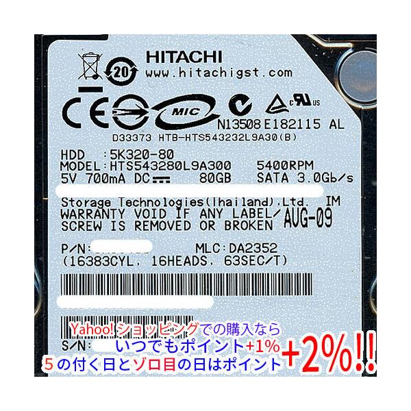 HITACHI ノート用HDD 2.5inch HTS543280L9A300 80GB