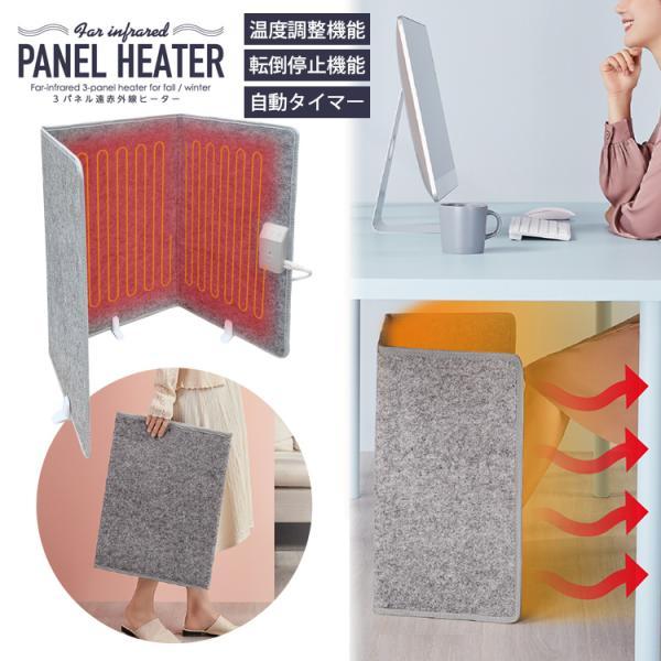 - 【商品特長】 ●遠赤外線で足元からあたためる 冬場エアコンの死角となる足元をしっかりとカバー。 エアコンのように乾燥し、のどが痛くなりにくいのもうれしい。 部屋の暖房は効いているのに足は寒くてひざ掛けが手放せない方にお勧めです。 ●どこでもあたたかい 冬場の寒いデスクワークや勉強など、幅広くお使いいただけます。こたつが置けないダイニングやお子様の学習机、オフィスデスクにおすすめです。 ●自動タイマーオフ機能 電源オン後、連続3時間使用すると暖房機能が停止します。 ●温度調整機能 三段階の調整が可能です。 弱/40~50℃ 中/50~60℃ 強/60~70℃ ●転倒停止機能 本体の角度が45度傾くと暖房機能が停止します。 ●軽くて折り畳める 薄型・軽量設計なので、持運びやすくなっています。リビング・ダイニング・子供部屋と移動の際に使えます。折り畳み式で収納にも困りません。 ●PSE 電気用品安全法認証商品 電気用品安全法は電気用品による事故を防ぎ、安全性を高めるための大切な法律です。こちらの商品は安心安全にお使い頂けるよう厳しい審査に合格しました。 【使用方法】 1、平らなところに立てる ●電源ボタン面を内側にコの字状に広げて使用してください。 ●逆さにすると電源がオンしません。 ●安定脚で安定させてください。 安定脚はプラスチック製ですのでフローリングを傷つけることがありますので注意願います。 2、電源コードのコネクターを電源ボタン下の取り口に差し込む。 3、電源プラグを交流 100Vのコンセントに差し込むと電源ランプが点灯します。 4、電源ボタンを押して、お好みの温度「強」「中」「弱」をお選び頂くと暖房開始します。 5、使い終わったら、電源ボタンを押して「強」「中」「弱」の点灯を全て消してください。 6、電源プラグを抜いてください。 【故障の原因となりますご注意ください】 ●水がかかりやすい場所では使わないでください。 ●本体を落下させたり衝撃を与えないでください。 ●凹凸や段差のある不安定な場所で使用しないでください。 ●回転いすなどに電源コードが巻き付かないように注意してください。 (電源コードが引っ張られ、破損する場合があります) 【商品仕様】 商品名:3パネル遠赤外線ヒーター 型番:TOA-TM-LV-PNLHT-002 JAN:4582667352990 本体寸法:約 W96×H53cm 重量:約1.30kg コード長:約 1.5m 表面素材:ポリエステル 100% 定格電圧:AC100V 50Hz/60Hz 放熱の方式:乾式 温度調整の方法:固定式 消費電力:200W 媒体の種類:アルミニウム ※写真と実際の商品が若干異なる場合があります。 ≪ オフィスやデスクで使える暖房 シリーズ≫ 遠赤外線パネルヒーター3面 テーブルヒーター セラミックファンヒーターパネル ヒーター3面 遠赤外線ヒーター 特長 ●遠赤外線で足元からあたためる 冬場エアコンの死角となる足元をしっかりとカバー。 エアコンのように乾燥し、のどが痛くなりにくいのもうれしい。 部屋の暖房は効いているのに足は寒くてひざ掛けが手放せない方にお勧めです。 ●どこでもあたたかい 冬場の寒いデスクワークや勉強など、幅広くお使いいただけます。こたつが置けないダイニングやお子様の学習机、オフィスデスクにおすすめです。 ●自動タイマーオフ機能 電源オン後、連続3時間使用すると暖房機能が停止します。 ●温度調整機能 三段階の調整が可能です。 弱/40~50℃ 中/50~60℃ 強/60~70℃ ●転倒停止機能 本体の角度が45度傾くと暖房機能が停止します。 ●軽くて折り畳める 薄型・軽量設計なので、持運びやすくなっています。リビング・ダイニング・子供部屋と移動の際に使えます。折り畳み式で収納にも困りません。 ●PSE 電気用品安全法認証商品 電気用品安全法は電気用品による事故を防ぎ、安全性を高めるための大切な法律です。こちらの商品は安心安全にお使い頂けるよう厳しい審査に合格しました。 仕様 商品名:3パネル遠赤外線ヒーター 型番:TOA-TM-LV-PNLHT-002 JAN:4582667352990 本体寸法:約 W96×H53cm 重量:約1.30kg コード長:約 1.5m 表面素材:ポリエステル 100% 定格電圧:AC100V 50Hz/60Hz 放熱の方式:乾式 温度調整の方法:固定式 消費電力:200W 媒体の種類:アルミニウム ※写真と実際の商品が若干異なる場合があります。 ≪ オフィスやデスクで使える暖房 シリーズ≫ 遠赤外線パネルヒーター3面 テーブルヒーター セラミックファンヒーター