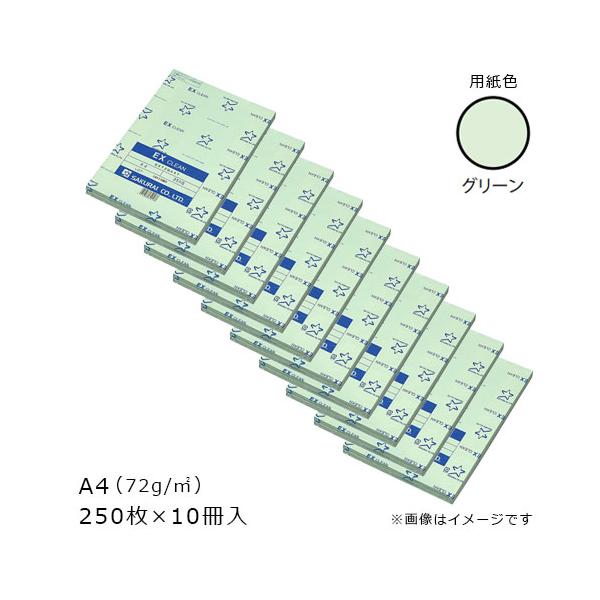 桜井 クリーンペーパー(無塵紙) EXクリーン グリーン 72g/m2 A4 250枚×10冊入 EX72GA4T