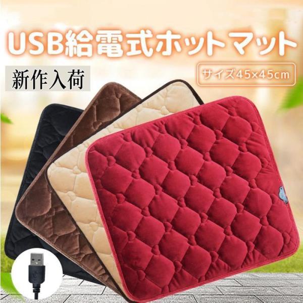 ホットマット 電気座布団 一人用 USB給電式 発熱マット ミニ ウォームパッド あったか 45×45cm 電気マット 電熱マット 温熱座布団 シートヒーター ケーブル長さ80cm 冬用品 室内 多機能 車用 ペット オフィス 全4色