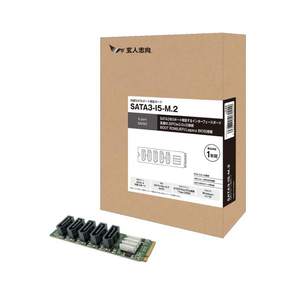 玄人志向 インターフェース SATA3 × 5ポート 増設 M.2 カード SATA3-I5-M.2