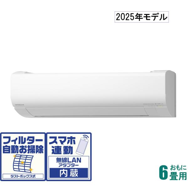 日立 (2025年モデル)(標準工事セットエアコン) 白くまくん [6畳用] (冷房:6〜9畳/ 暖房:6〜7畳) Wシリーズ (スターホワイト) RAS-WR2225S-W 返品種別A
