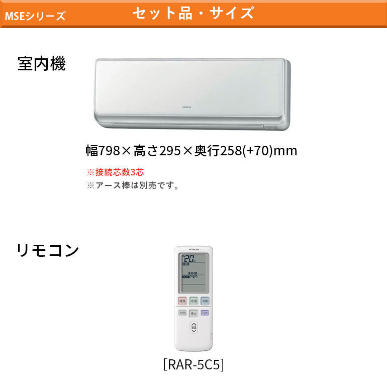 エアコン 冷暖房 単相200V 日立 2.2kW 6畳用 壁掛形 室内機のみ ハウジングエアコン ステンレスフィルター ホワイト 自動お掃除 MSEシリーズ 2025年 RAM-SE22S