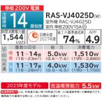 エアコン 冷暖房 抗菌 高さ 25cm以下 省エネ 日立 壁掛型 白くまくん 2025年度 14畳 単相200V 無線LAN VJシリーズ RAS-VJ4025D-W