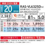 エアコン 冷暖房 抗菌 高さ 25cm以下 省エネ 日立 壁掛型 白くまくん 2025年度 単相200V 20畳 無線LAN VJシリーズ RAS-VL6325D-W