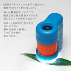 ポケットに入れたりバッグにぶら下げたりして持ち歩け、サッと取り出して観察できる手のひらサイズのコンパクトな顕微鏡です。LEDライト付で室内や夜でも観察できます。