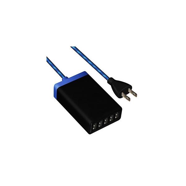 - FSC 5ポート USB AC チャージャー 「イルミネーション」 充電中ケーブルが光る 最大6.5A給電 CA-05BK 給電量により光の流れる速度が変わる 電源:AC100~240V出力電圧:5V/6.5A(1ポート最大2.4A)ポート数:5ポート(Type A)電源ケーブル:1m重量:275g 5