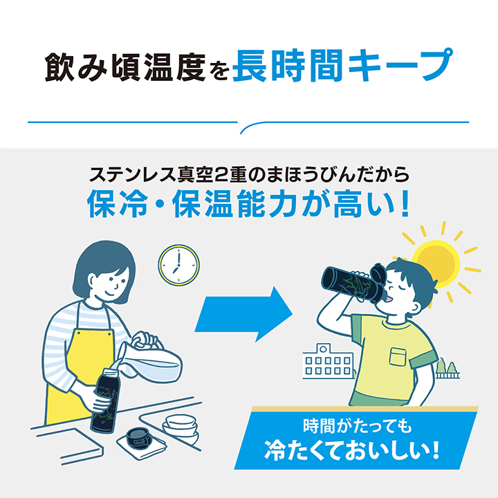 - 商品説明発売日:2025年12月1日お子さまが使いやすい理由 ・持ち運びがラクラク! 軽くてコンパクトだから、カバンに出し入れしやすく、持ち歩きもラクチン。 ・片手でもサッと飲みやすい! スライドロックを解除してボタンを押すだけ。しかも水滴が飛び散りにくい「飛び散り抑制機構」つき。 ・飲み物の温度を長時間キープ! ステンレス真空2重のまほうびんだから、保冷・保湿力が高い!飲みごろ温度も長続き。 ・スポーツドリンクOK! 耐食性が高くサビに強い「ラクリア加工+(プラス)」。 汚れも落ちやすくサッと洗えてお手入れもカンタン。 ・パッキンを分解せずに洗える「シームレスせん」! 本体丸洗いOK!分解しなくても洗える「シームレスせん」で、パッキンのつけ忘れによる水漏れやなくす心配もありません。 ※別売肩がけで持ち運びラクラク「ボトルカバー」あります。商品詳細品番SM-WN48実容量(L)0.48外形寸法(約cm)6.5×7×21.5本体質量(約kg)0.21保温効力(6時間)71°C以上保冷効力(6時間)8°C以下口径(約cm)4SMWN48 類似商品はこちらZOJIRUSHI 象印 SM-WN48-AJ3,980円ZOJIRUSHI 象印 SM-WJ48-AZ3,980円ZOJIRUSHI 象印 SM-WN48-BZ3,980円ZOJIRUSHI 象印 SM-WJ48-GZ3,980円