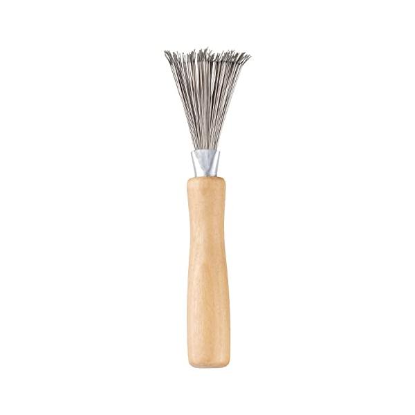 - ヘアブラシのクリーナー天然毛ブラシやナイロンブラシに絡まった髪の毛やホコリを除去するための専用お掃除ブラシです。 金属ピン100本以上を使用したくまで型金属製のブラシをくまで型に植え込むことで、細い毛のブラシに絡まった髪の毛やホコリを簡単にかきとることができます。 掃除のしにくいブラシにも最適ロールブラシや獣毛ブラシなど普段のお手入れもしにくいブラシでも使いやすい形状です。 木製ハンドル付きでコンパクト握りやすい木製ハンドルを採用し、コンパクトな設計に。 原産国:中国 素材:ハンドル…天然木、止め金属部…アルミニウム ブラシ…ステンレス