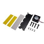 - 放熱性の高い2mm厚のアルミ製ヒートシンクに強制空冷用の小型ファンを搭載したことにより、極めて高い冷却性能を実現しました。■ファンの取付位置を3段階に調節可能なので熱源をピンポイントで冷却できます。発熱位置や実装環境に合わせて、ヒートシンクの右端・中央・左端へ冷却ファンを固定することができます。■油温上昇を抑制し密閉性を向上させる事で油漏れや異物混入を防ぎ、低ノイズ・低振動・高耐久性を実現した中空ベアリングを採用した、冷却性と静音性を兼ね備えた小型高性能ファンを搭載しました。■標準搭載ファンにオプションの増設ファンを追加し、冷却性能をさらに高めたデュアルファン仕様にすることができます。■凸凹したM.2 SSDの基板面からヒートシンクへ安全かつ効率よく熱を伝えるために、極めて高い熱伝導性と絶縁性を両立させた、超低硬度放熱シリコンパッドを採用しました。柔らかく粘着性があるため基板面の凸凹にしっかり密着し、優れた熱伝導効果が得られます。■ヒートシンクとM.2 SSDの固定には耐熱絶縁テープでガッチリ固定します。耐熱絶縁テープは微粘着仕様となっており、剥がす際にラベル面を劣化させないように配慮しています。